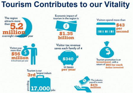 Room demand, room revenue, leisure and hospitality employment and wages are tracked over the past ten years to determine the extent to which a destination are competing (or not) in the tourism market
